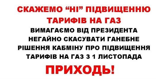 Як повідомили у "Батьківщині", мітинг звернеться до депутатів, щоб ті стали на захист громадян і звернулись до Президента України і Верховної Ради України з вимогою негайно скасувати необґрунтоване підвищення ціни на газ.