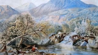 На роботах зображені гірські пейзажі, річка та віддалена фігура людини, що сидить під деревом, передає Бі-Бі-Сі Україна.