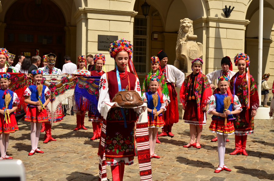 З нагоди Дня вишиванки скульптури львівських левів теж одягли у вишиті сорочки.