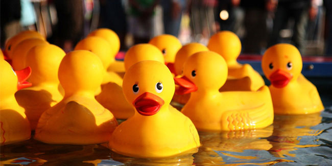 13 січня в Україні і світі святкують День гумової качки. Неординарна подія, яка особливо популярна в США, де і почали вперше святкувати таке свято. Хоча немає достовірної інформації про те, хто став ініціатором дня і коли він був започаткований, проте гумова качечка має дуже багато прихильників. Раніше гумові качечки використовували винятково для того, щоб заспокоїти малюків під час купання. Сьогодні ця іграшка стала частиною колекцій багатьох дорослих, які завдяки їй згадують щасливе дитинство. Виготовляти гумові качечки почали в США наприкінці XIX століття, а патент було отримано лише 1928 року.