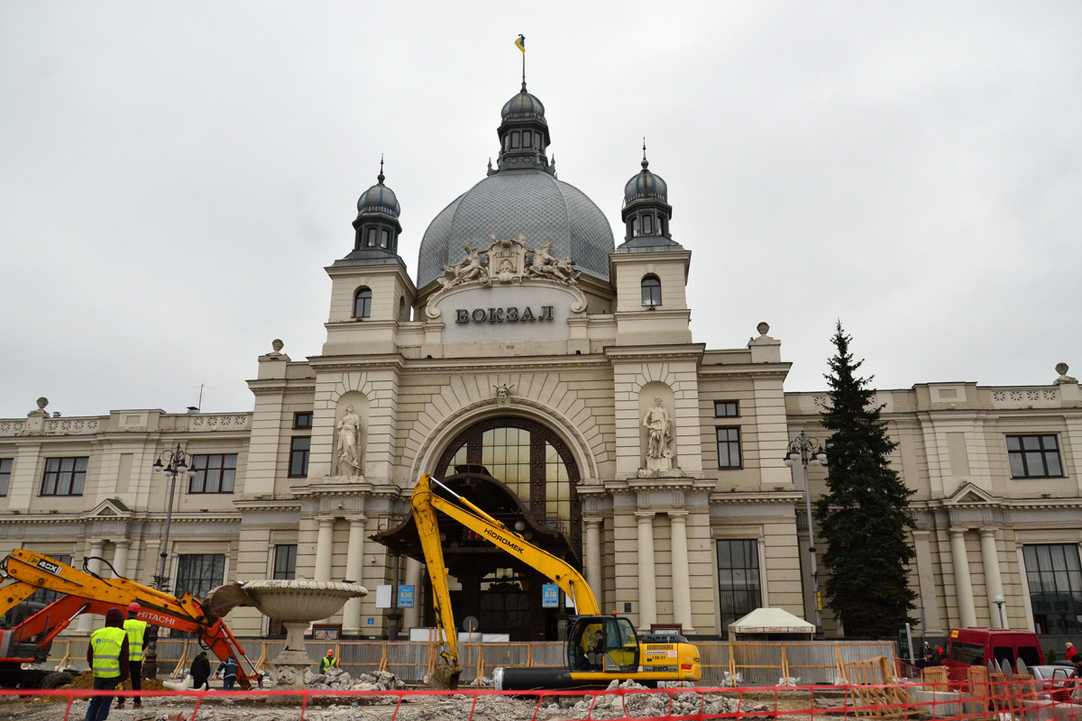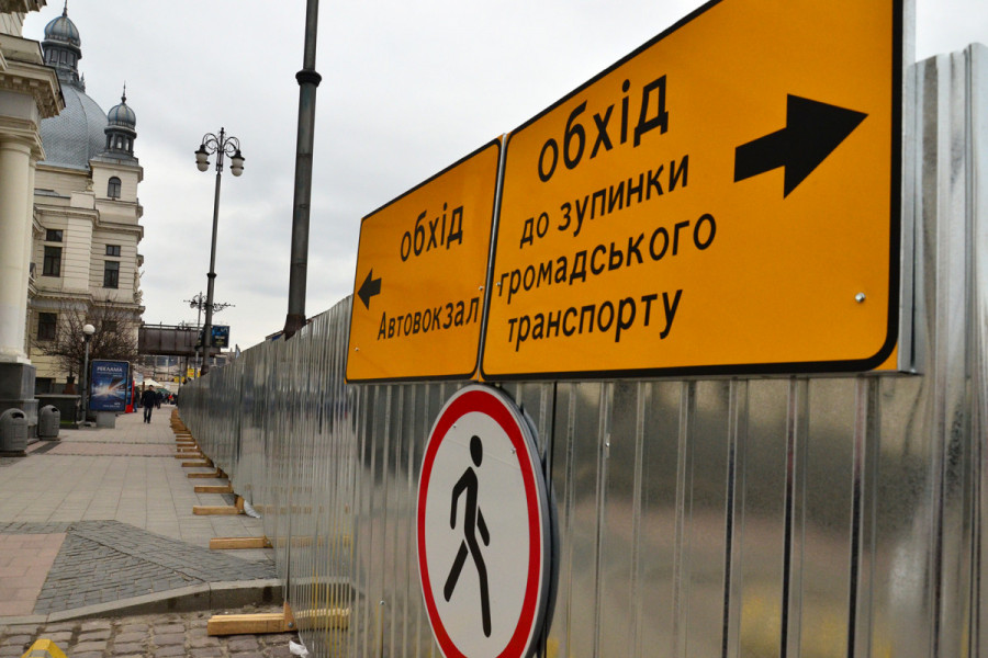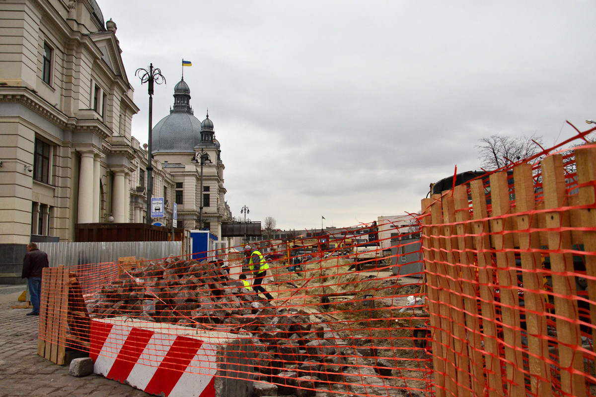«Триває реконструкція площі Двірцева. Роботи розширюються і з наступного понеділка, 25 березня, буде збільшено зону закриття площі, а саме буде закрито територію, яка захоплює Автостанцію.