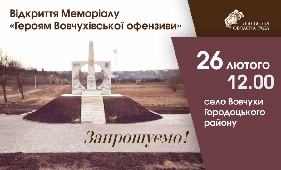 У середу, 26 лютого, у селі Вовчухи Городоцького району відбудеться урочисте відкриття та освячення Меморіалу «Героям Вовчухівської офензиви».