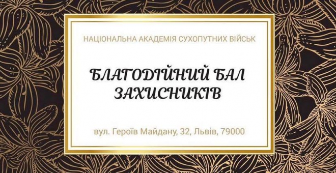 6 жовтня о 18.00 у Львові з нагоди Дня захисника України в Національній академії сухопутних військ імені Петра Сагайдачного відбудеться щорічний Благодійний бал захисників. Про це повідомили в Міноборони.