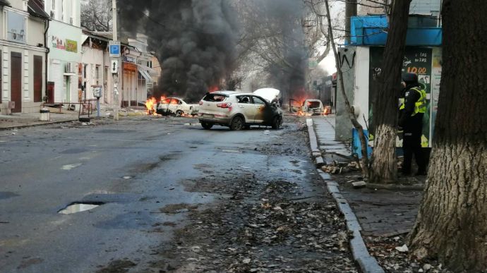 "24 грудня близько 11:00 внаслідок чергового обстрілу Росії з реактивних систем залпового вогню по житловому району міста загорілися 66 легкових автомобілів. Рятувальники протягом 40 хвилин ліквідували пожежі", - повідомило Міністерство внутрішніх справ у телеграм-каналі.