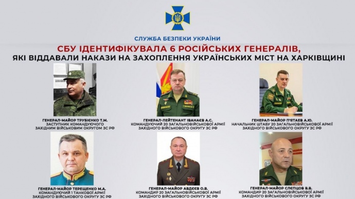СБУ ідентифікувала 6 російських генералів, які віддавали накази на захоплення українських міст на Харківщині