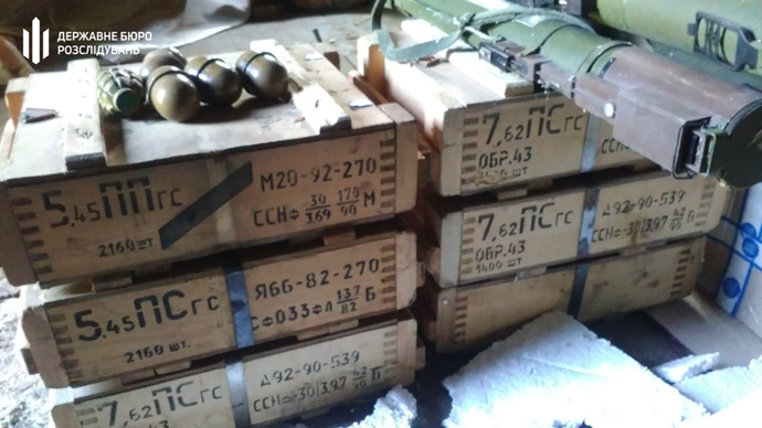 Під час обшуку у службовому автомобілі посадовця СЗР було вилучено майже 6 000 патронів калібру 5.45, більше 4 000 набоїв калібром 7.62, 4 гранати РПГ-26, 1 ручну протитанкову гранату РПГ-22, 5 уніфікованих запалів ручних гранат, 5 гранат РГД-5 та гранату Ф-1.