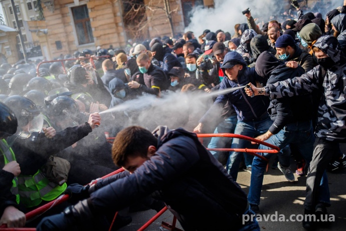 Учасники акції спробували прорвати кордон правоохоронців. Сталася невелика сутичка, в ході якої застосували сльозогінний газ.