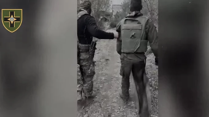 На відео українські військові розповіли, що йшли шукати дрон, знайшли його, і на відстані близько кілометра від свого розташування побачили чоловіка в російській формі. Він спершу не помітив українців.