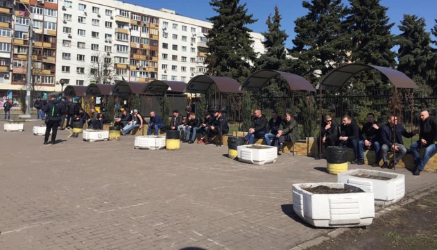 На площі біля Центральної виборчої комісії збираються молоді чоловіки нібито для охорони порядку.