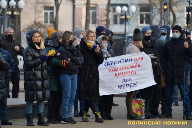 Як повідомлялося раніше, 11 листопада тисячі працівників кафе та ресторанів у Луцьку вийшли на протест проти карантинних обмежень. 16 листопада під стіни обласної державної адміністрації знову вийшли підприємці з вимогами скасувати карантин вихідного дня.