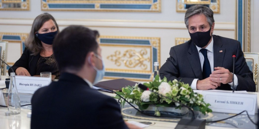 19 січня держсекретар США зустрівся в Києві з президентом України Володимиром Зеленським та головою МЗС Дмитром Кулебою, підтвердивши відданість США суверенітету та територіальній цілісності України.