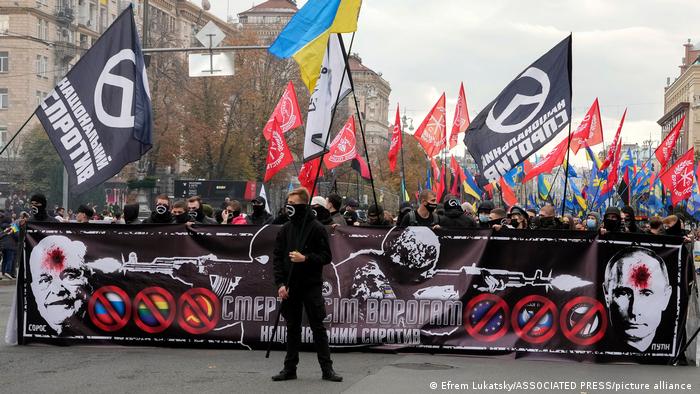 На банерах організації "Національний спротив" можна було побачити ненависницькі символи і гасла.