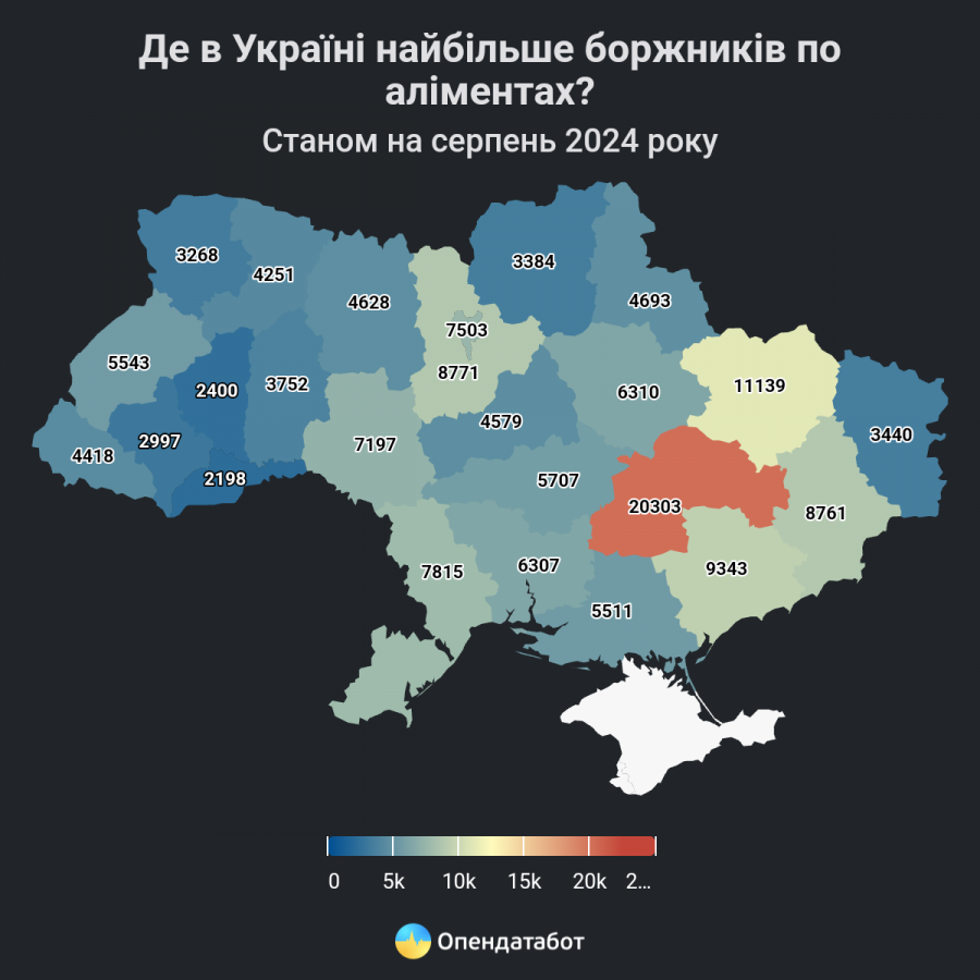 Станом на початок серпня цього року в Україні зареєстровано майже 190 тисяч проваджень щодо боргів по аліментах, що на 14% більше, ніж до початку повномасштабної війни. У 2024 році кількість нових проваджень зросла на 2,8 тисячі.