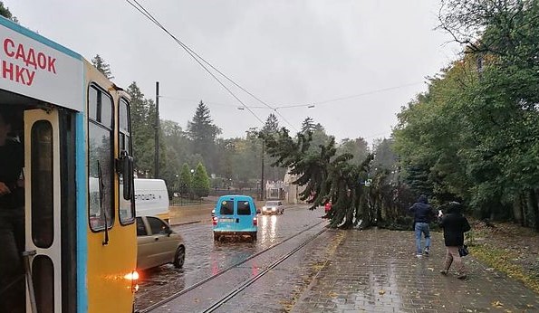 У зв’язку із буревієм, тимчасово не курсують тролейбусні маршрути № 22, 29, 32, а також трамвайний маршрут № 1. На місцях падіння дерев та пошкодження контактної мережі ЛКП «Львівелектротранс» працюють усі необхідні аварійні служби.