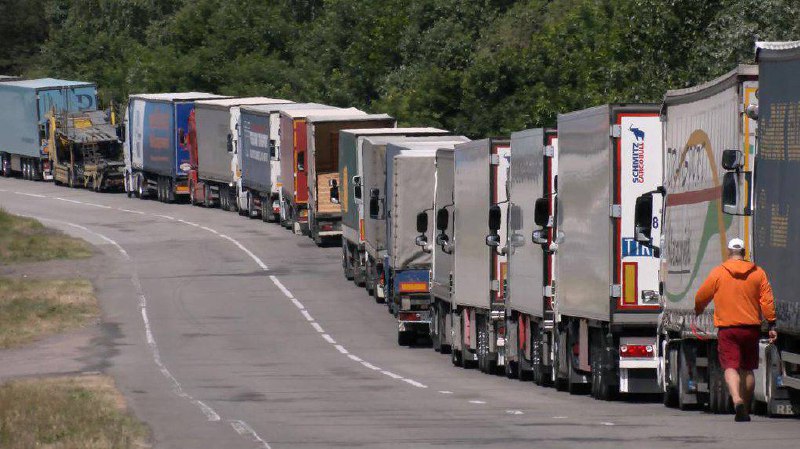 На сьогодні протяжність черги вантажівок на виїзд з України становить десятки кілометрів, простої автомобілів у чергах тривають від 6 до 7 діб.