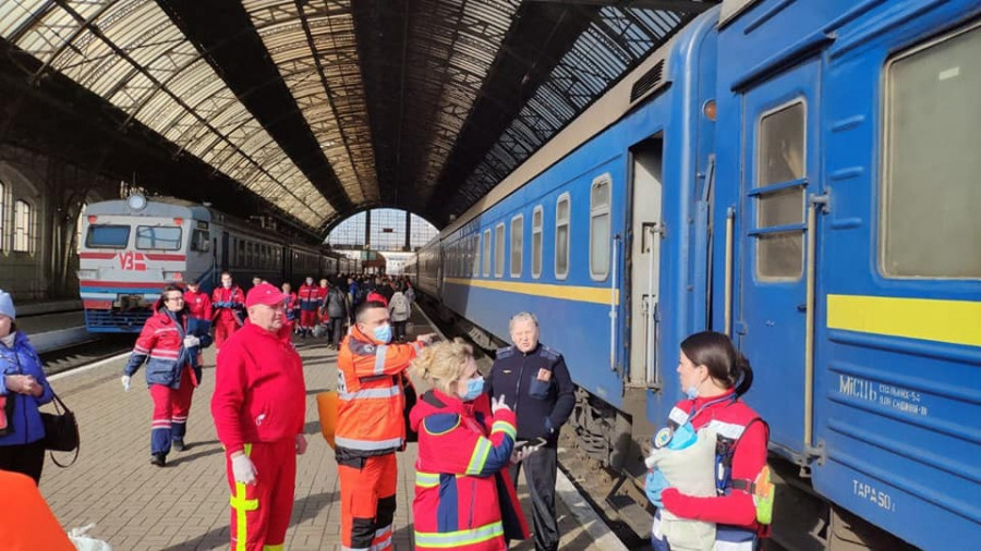 На вокзалі людей зустріли медики, які надали допомогу пораненим Про це інформує Львівська обласна державна адміністрація, передає "Еспресо. Захід".
