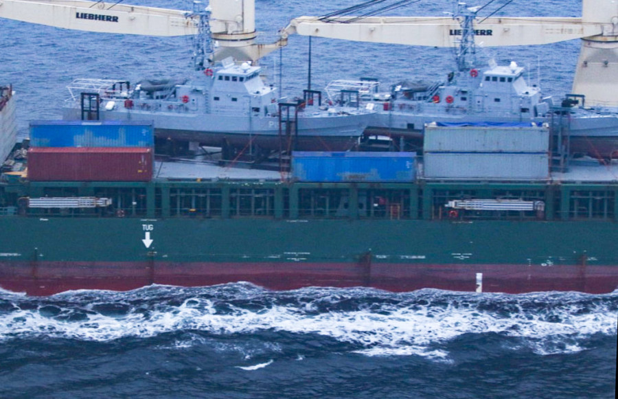 Патрульні катери українських ВМС на борту вантажного судна подолали тисячі миль та увійшли до територіальних вод України. Попереду, вже у супроводі кораблів ВМС, кінцева зупинка маршруту - Одеський морський торгівельний порт, проходження митного контролю, розвантаження, відбуксирування до місць базування та підготовка до експлуатації після тривалого транспортування.