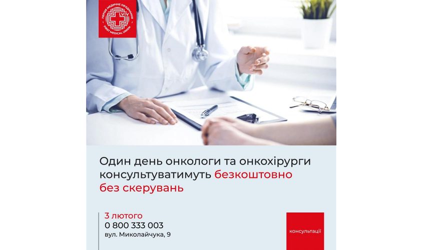 Початок консультацій – 3 лютого о 8:00 год. у відділенні онкології та онкохірургії Лікарні святого Пантелеймона (вул. Миколайчука, 9, 4 поверх).