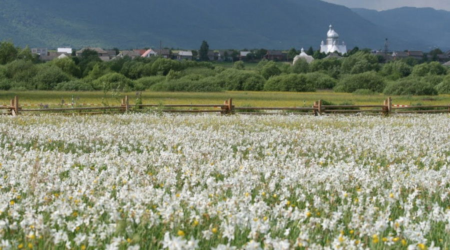 У Долині нарцисів, що в районі Хуста на Закарпатті, рівно тиждень тому почали цвісти перші квіти.