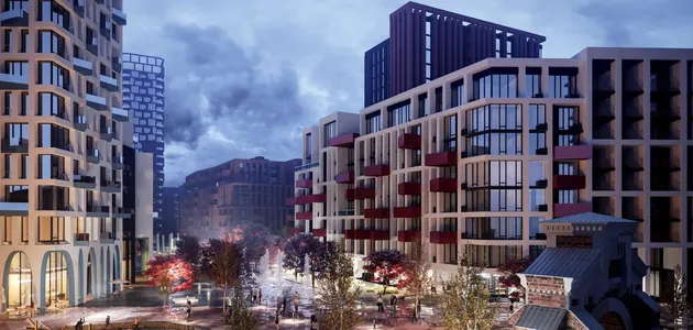 Будівництво комплексу стартувало у 2021 році, а введення в експлуатацію обіцяли наприкінці 2024-го. Однак станом на грудень 2025 року зведено лише монолітний каркас одного 14-поверхового будинку. Нова заявлена дата здачі перших секцій — перший квартал 2027 року, при цьому активні будівельні роботи наразі не ведуться.