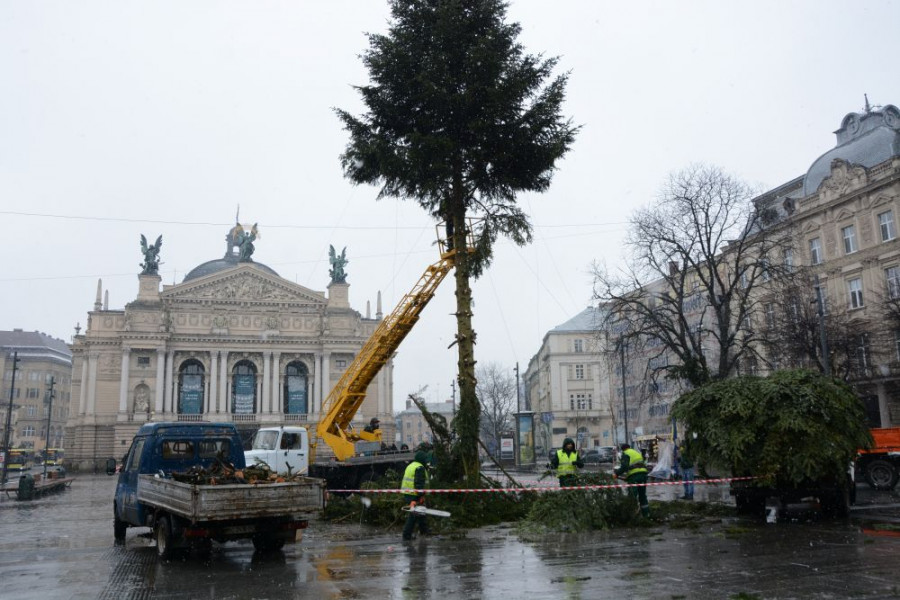 Оскільки новорічно-різдвяні свята закінчилися, то сьогодні працівники ЛКП «Львівсвітло» та інженери ЛКП «Зелений Львів» розбирають центральну ялинку міста, яка розташована на просп. Свободи перед Оперним театром.