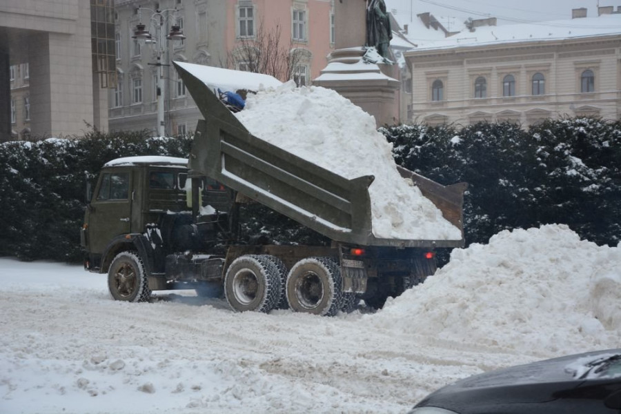 У Львові сніг з центру міста звозять на проспект Свободи та скидають у колектор, який розташований біля пам'ятника А. Міцкевичу.