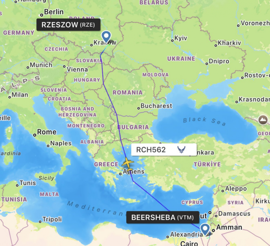 Як повідомляють джерела OSINT, цього тижня кілька військово-транспортних літаків C-17 ВПС США здійснили серію рейсів із авіабази Рамштайн у Німеччині до ізраїльської авіабази Хацерім, що на півдні країни. Після цього літаки попрямували до польського міста Жешув, яке є стратегічним вузлом для доставки міжнародної військової допомоги Україні.