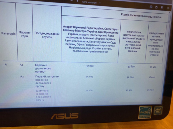 3. Наприклад, керівник державного органу (Офіс ПУ, апарат РНБО) матиме посадовий оклад на рівні 37800 грн, а рівня міністерств та центральних органів виконавчої влади 33600 грн", - пише Гончаренко.