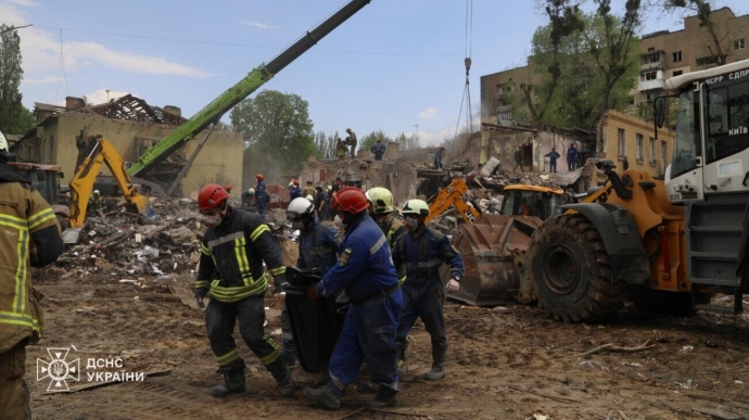 Наразі пошуково-рятувальні роботи та ліквідація наслідків атаки тривають.
