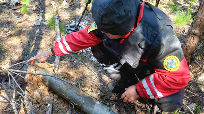 1 травня п’ять піротехніків "Київської служби порятунку" протягом дня обстежили близько 0,5 га території Святошинського лісництва і виявили частини від боєприпасів РСЗВ "Град".
