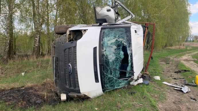 Другий вибух стався в Макарівському районі, коли бригада електриків відновлювала електроенергію й виїхала на польову дорогу.