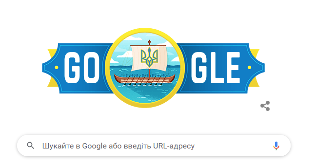 Компанія Google відзначила 30-річчя Незалежності України яскравим дудлом. У святковому логотипі традиційно використані відтінки синього і жовтого - кольорів прапора України, а в центрі розташовано стилізоване зображення славної козацької чайки - судна запорізьких козаків - з українським тризубом на вітрилі.