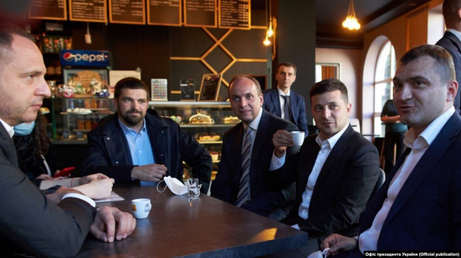 3 червня під час робочої поїздки до Хмельницького президент Володимир Зеленський із делегацією попив кави всередині приміщення місцевого кафе в порушення карантинних обмежень. Після того, як фото оприлюднила пресслужба президента мережею поширилася критика користувачів щодо поведінки президента і його оточення в умовах пандемії коронавірусу.