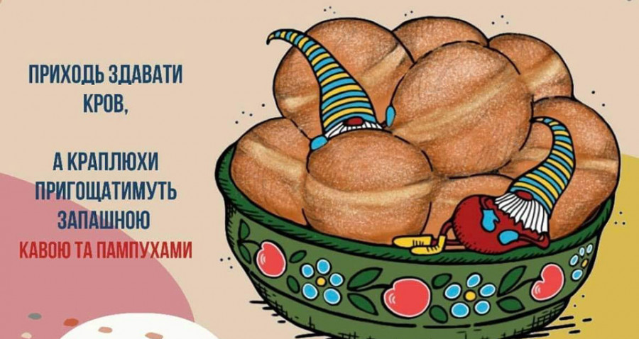 У четвер, 12 січня, львів'ян закликають прийти до Центру крові й здати кров для поранених воїнів, а натомість донорів пригощатимуть пампухами та кавою