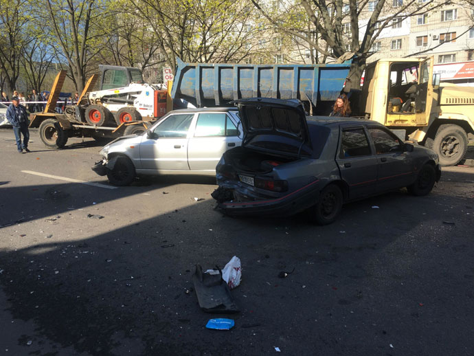 Близько 9.00 середи, рухаючись вниз по проспекту Поля, вантажний автомобіль КрАЗ несподівано почав таранити машини, які рухалися перед ним.