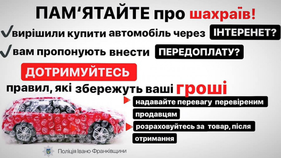 Купівля автомобіля через Інтернет завершилась для прикарпатця втратою грошей