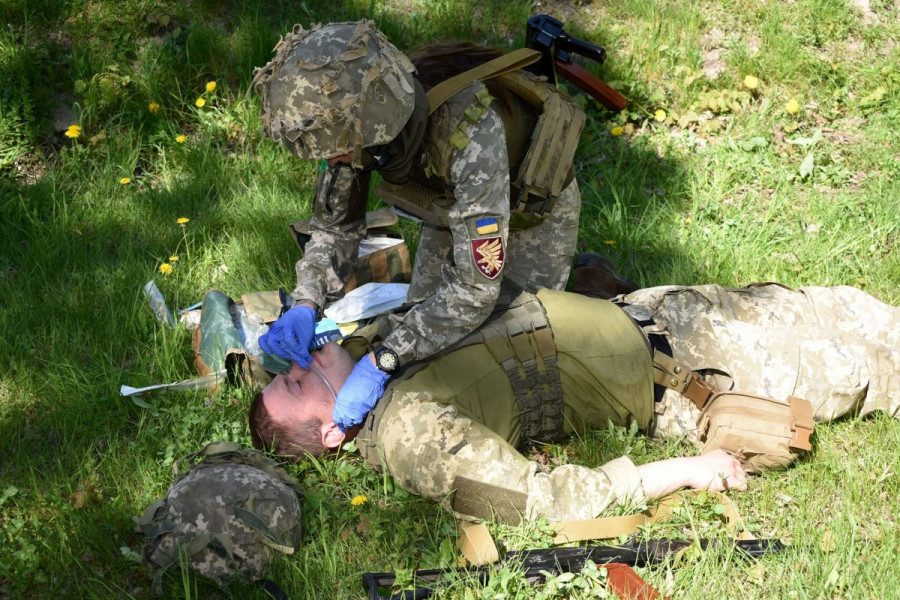 Наступний етап – надання медичної допомоги в зеленій зоні. Медики показували боротьбу з наслідками кровотечі. Це передбачало проведення інфузійної терапії пораненим, сортування та підготовку їх до евакуації.