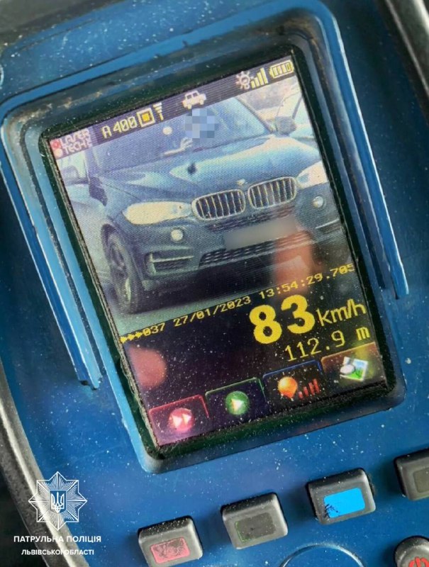 Сьогодні, 27 січня, львівські патрульні, під час здійснення контролю швидкісного режиму за допомогою приладу TruCam, на проспекті Червоної Калини у Львові, зупинили автомобіль BMW X5.