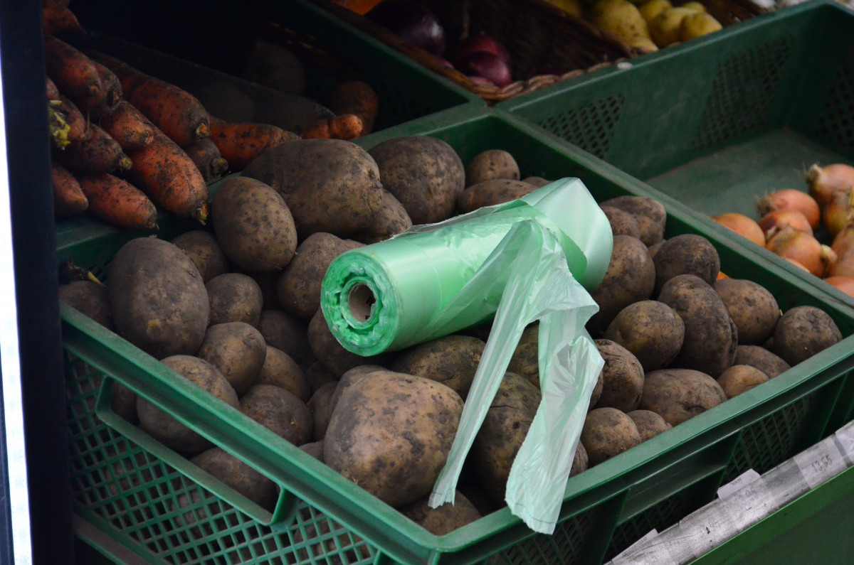 В одному із супермаркетів, де побував кореспондент WN, покупцям дійсно пропонували на касі паперові пакети. Однак, на розкладках біля овочів і надалі лежав звичний всім пластик.