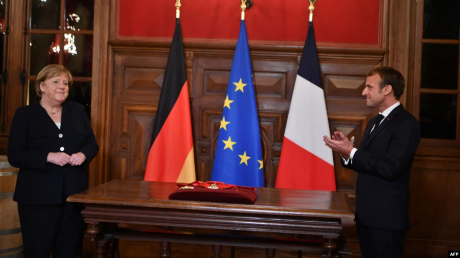 Президент Франції Емманюель Макрон нагородив в.о.канцлера Німеччини Ангелу Меркель орденом Почесного легіону. На церемонії вручення ордена Макрон зазначив, що Меркель, попри різні потрясіння, сприяла збереженню європейської єдності.