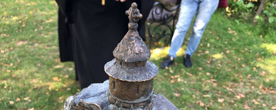 Про це Суспільному розповів настоятель ротонди Богдан Савула. За його словами, зробили мініскульптурку з бронзи за пожертви вірян скульптор Роман Мурник та коваль Степан Руснак.