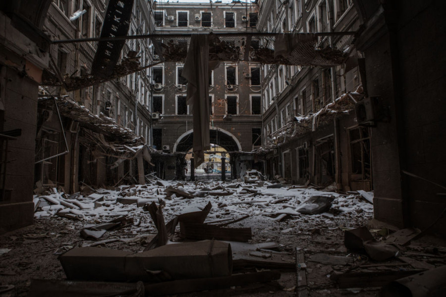Фото - розбомблені будівлі в центрі Харкова, Україна, 9 березня 2022 року. Фото: Andrea Carrubba/Anadolu Agency via Getty Images