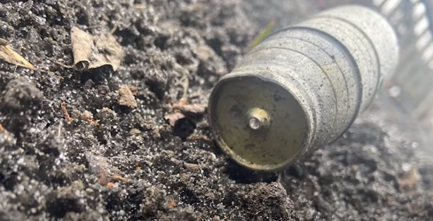«Відмітною ознакою такого елемента є біла стрічка. Не підходьте до снаряда ближче ніж за 10 метрів», - говорить начальник групи піротехнічних робіт та гуманітарного розмінування АРЗСП ДСНС в Донецькій області Анатолій Краснопьоров.