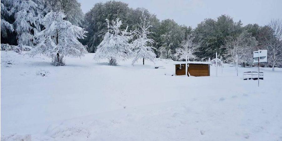 До п'яти сантиметрів снігу випало в місцях вище 900 метрів над рівнем моря. Температура там зараз від 6 до 9 градусів Цельсія, іноді показники опускалися до 1 градуса, що значно нижче норми для цієї пори року.