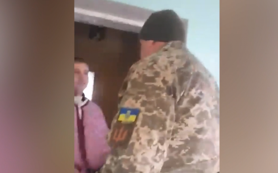 На відео, що потрапило до мережі, один із чоловіків у військовий формі погрожує «задушити» священника і робить відповідний жест — обхоплює рукою його шию, але потім відпускає. Також він каже, що «забере» сина священника, вочевидь, маючи на увазі мобілізацію, якщо сам клірик не піде до війська.