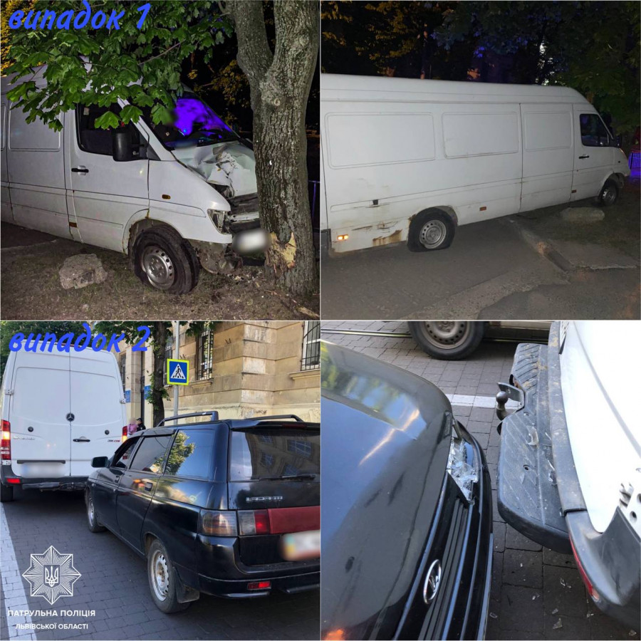Перший випадок ДТП стався на вулиці Зеленій, близько півночі. Водій автомобіля Mercedes-Benz не впорався з керуванням та в‘їхав у дерево.