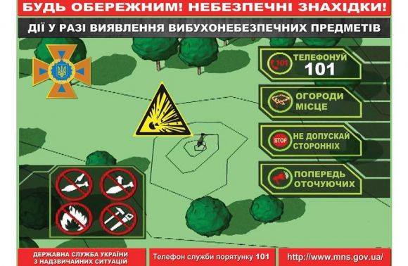 Рятувальники застерігають у жодному разі не чіпати підозрілі знахідки. У разі виявлення боєприпасу чи іншого підозрілого предмету слід негайно телефонувати до Служби порятунку за номером 101!, – поінформували також в обласному управлінні ДСНС.