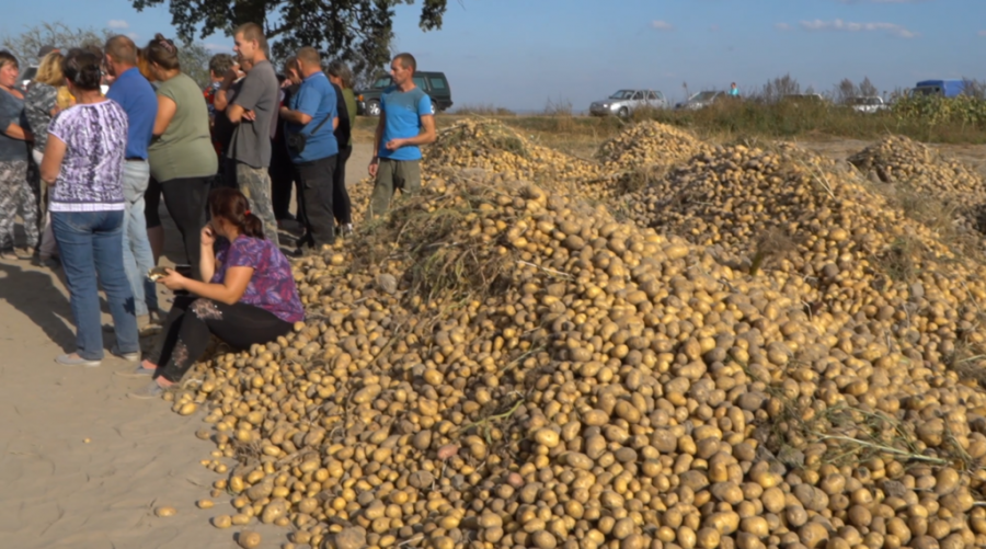 Директорка господарства «Ожидівські лани» Любов Когут, що орендує паї у селян, каже, вибирають картоплю у полі зовсім не її працівники, а справжні рейдери.