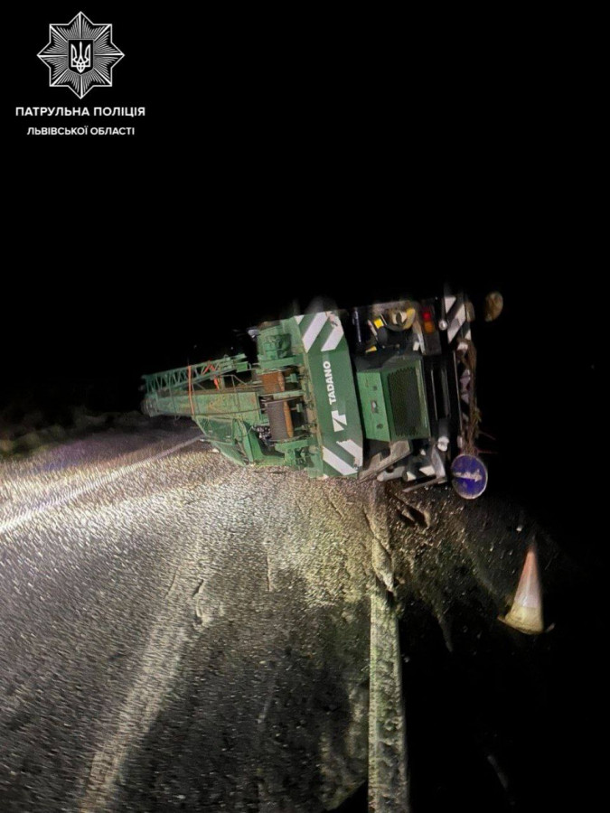 На автодорозі біля н.п. Велика Білка у Львівській області сталася ДТП із перекиданням вантажівки, що перевозила кран, унаслідок чого пошкоджено проїжджу частину дороги, повідомила пресслужба патрульної поліції України.