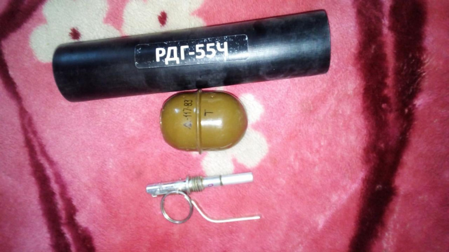 Поліцейські вилучили у чоловіка предмети, схожі на гранату РГД-5, запал до неї та димову шашку. Усе скеровано на експертне дослідження.